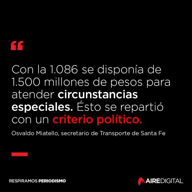 Osvaldo Miatello, secretario de Transporte de la provincia, explicó en Aire de Santa Fe, que "en base a la 1.085, el Gobierno repartía subsidios a las empresas de transporte que prestan servicio en las diferentes provincias teniendo en cuenta determinados indicadores, fundamentalmente, los kilómetros recorridos".