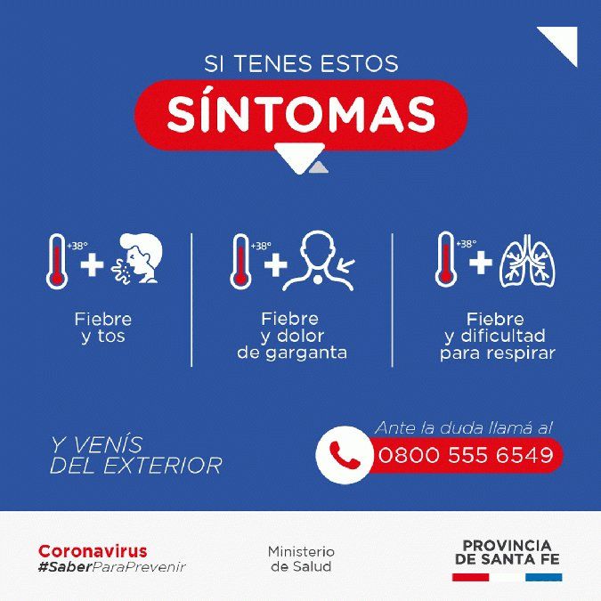 El Ministerio de Salud habilitó la línea de consultas 0800 555 6549. En su primer día, fueron atendidas más de 550 llamadas. Más información oficial sobre la pandemia puede ser consultada en www.santafe.gov.ar/coronavirus.