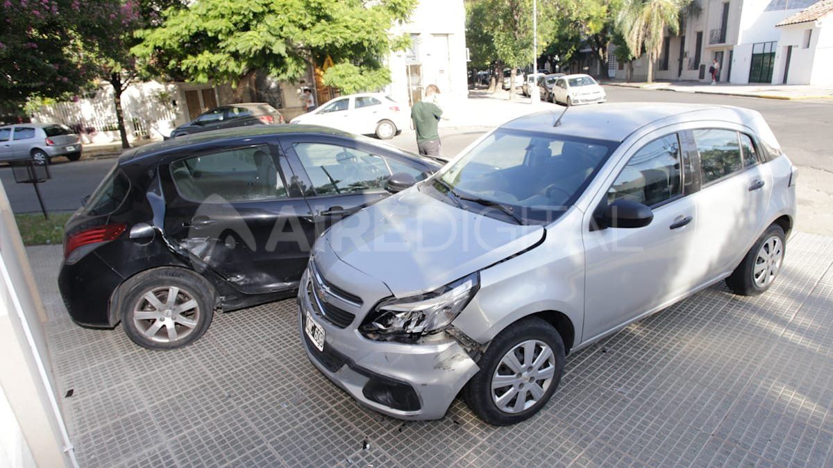 Un Chevrolet Aveo circulaba por calle Cándido Pujato en dirección a la salida del sol, lo que puede haber causadO la pérdida de visión. Impactó contra el Peugeot 308 que iba por 1ro de Mayo en dirección hacia el sur. Cuando fue atropellado dio un trompo y luego los dos vehículos terminaron estacionados uno al lado del otro sobre la vereda.