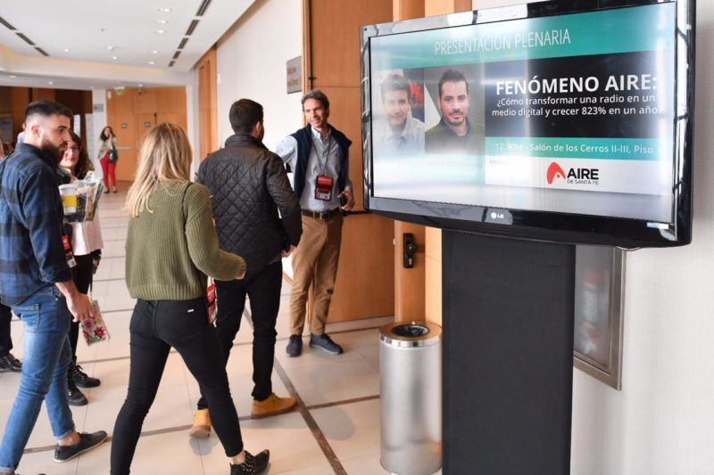 Con la cordillera de Los Andes de fondo, en uno de los salones del Hotel Intercontinental de Mendoza, Luis Mino, director de Aire de Santa Fe, y Mario Altamirano, director de Aire Digital, disertaron en la conferencia “Fenómeno Aire: ¿cómo transformar una radio en un medio digital y crecer 823% en un año?”.