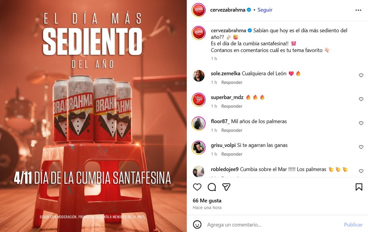 Un error de comunicación en redes sociales de una importante marca de cervezas encendió el ingenio local este martes por un desliz en el timing de una efeméride. A través de un posteo, Brahma publicó un posteo en conmemoración del Día de la Cumbia Santafesina, pero un día antes. La celebración, que es un verdadero emblema cultural para la provincia, tiene lugar este miércoles 5 de noviembre.