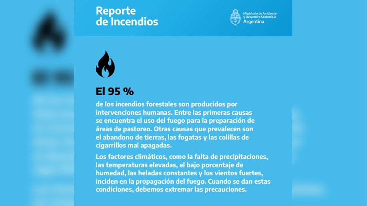 En cuanto al origen de los mismos, el funcionario advirtió que a veces ocurren "por quemas de pastizales para la limpieza del terreno, o tormentas eléctricas" y que "los fuertes vientos y el ambiente seco" hacen que estos sean voraces y complejos a la hora de combatirlos.