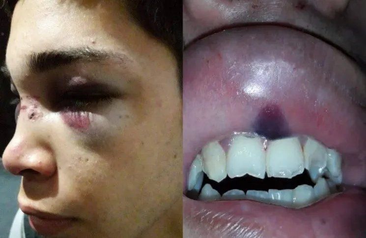 El joven fue trasladado al Hospital Centenario "Natalio Burd", donde los médicos constataron que tenía fractura de tabique y dientes partidos, además de hematomas en la cara y lesiones en piernas por impactos de bala de goma.
