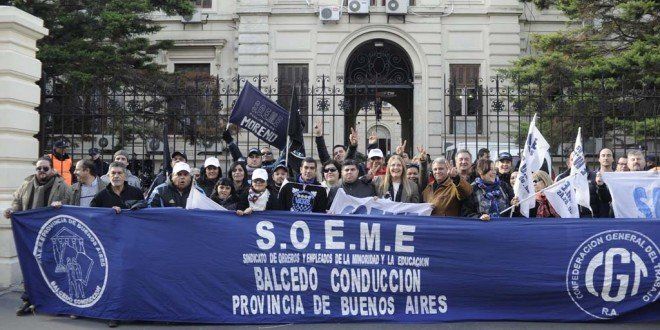 El Sindicato de Obreros y Empleados de la Educación y la Minoridad (SOEME) fue escenario este miércoles de una disputa sindical, ya que dirigentes del sector del ex secretario general Marcelo Balcedo se acercaron para "recuperar" la conducción aduciendo que tenían el aval de la Justicia para desplazar al actual titular, Adrián de Marco.