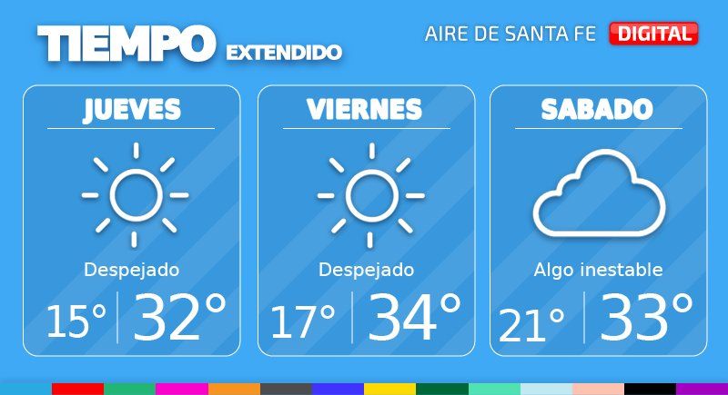 El jueves se presenta con condiciones estables debido a la influencia de la masa de aire frío y seco que domina en la región a pesar de la rotación de los vientos al sector noreste en la tarde de ayer. La ausencia de viento provocó que el aire fresco se haga sentir en las afueras de la ciudad y la temperatura llegue a 13.1° en Colastiné Norte a las 6:30 mientras que a la misma hora la estación meteorológica de la FIQ indicaba 21.3° debido al calor del sol de ayer acumulado en los edificios. Los registros están en ascenso y llegarían a una máxima de 32°.