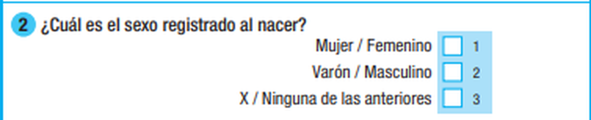 ¿De dónde sale ese dato? De una de las preguntas centrales del Censo 2022. En el mismo se consultaba a la persona cuál era el sexo registrado al nacer y se dio tres opciones: varón, mujer o X (ninguna de las anteriores).