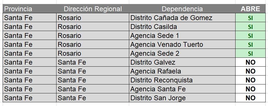 A continuación, el detalle del esquema de dependencias de la provincia de Santa Fe que reinician el trabajo presencial este martes 16 de junio y las que no.