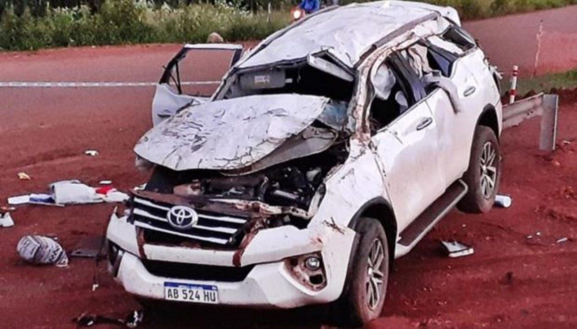 Leverberg, de 57 años, viajaba a bordo de una camioneta Toyota por la ruta 14 de San Pedro cuando, a la altura de la localidad de Cruce Caballero, el vehículo se desestabilizó y volcó.