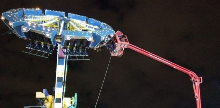 36 personas fueron rescatadas después de cinco horas, luego de que un juego mecánico, llamado "El Martillo", en el Hollywood Park en San Juan quedara colgando a unos 10 metros de altura pic.twitter.com/3w4FADcbfT