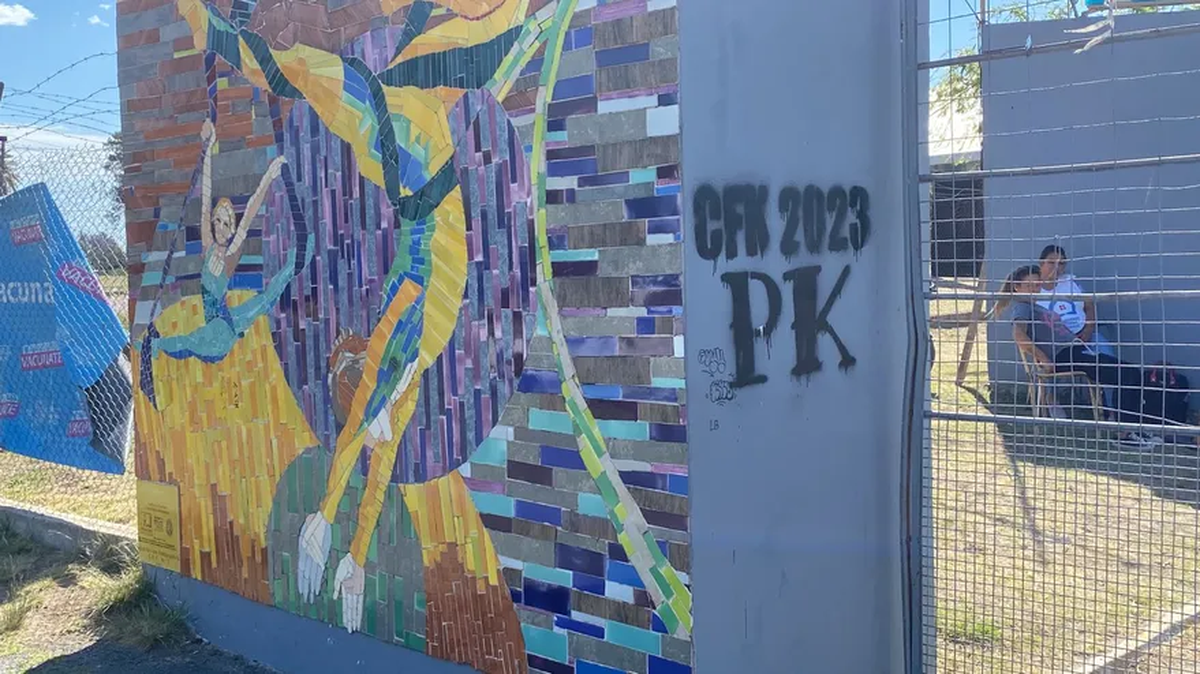 Sí había un grafiti en la pared, que reza Cristina Kirchner 2023. Además, un cartel en el portón de acceso anunciaba a la comunidad: “Miércoles 16 y jueves 17 el vacunatorio [que funciona en el mismo predio] permanecerá cerrado”. Una persona a cargo del ingreso –que prefirió no identificarse por ser empleado público– informó, sin dudar: “No hay clases por el acto de Cristina. Tampoco se vacuna”.