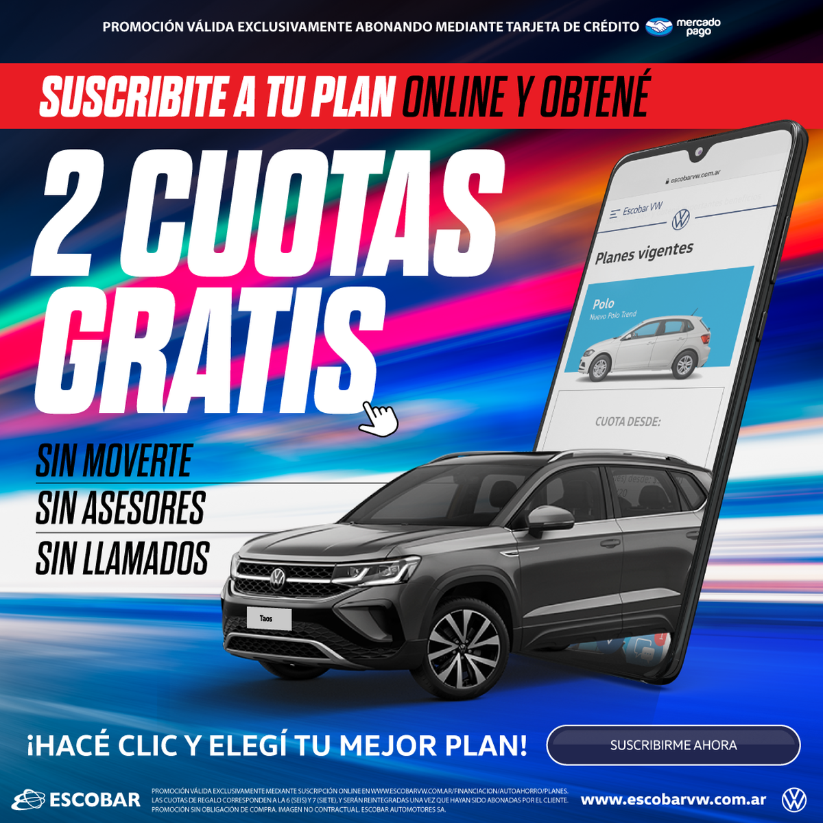 Para obtener la Oferta online tenés que ingresar al sitio web y elegir tu 0km de preferencia (Ford o Volkswagen). Luego completas con tus datos, seleccionas “Pago con Tarjeta de crédito”, cancelas la primer cuota y listo, ¡ya estás inscripto!
