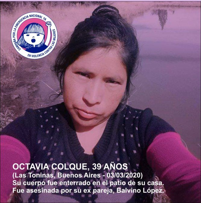 Octavia Colque tenía 39 años. Estaba desaparecida desde el viernes último y fue encontrada este miércoles enterrada en el fondo de su vivienda de la localidad bonaerense de Las Toninas. Fue asesinada por su ex pareja, Balvino López, quien quedó detenido.