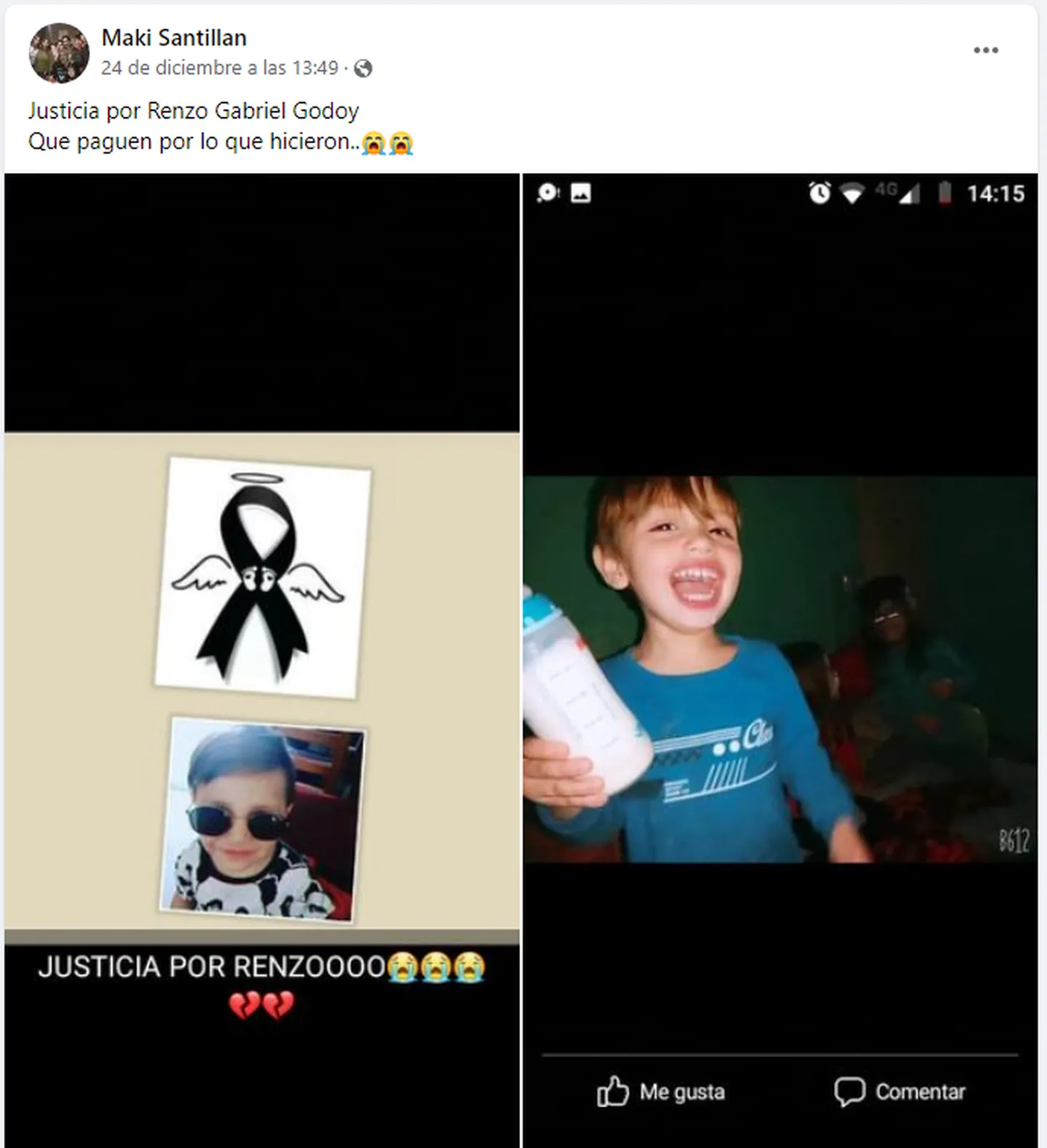 “Esta madrugada nos avisan que, según ella, el nene se ahogó bañándose. A otros les dijo que se golpeó en la ducha. La autopsia reveló que fue golpeado. Quedaron detenidos por homicidio. Se van a pudrir en la cárcel espero, pero, ¿quién nos devuelve a Renzito? Cuatro años,no se pudo ni defender de estos monstruos. ¿Qué mal puede hacer una criatura?. No lo puedo entender, no lo voy a entender jamás”, expresó.