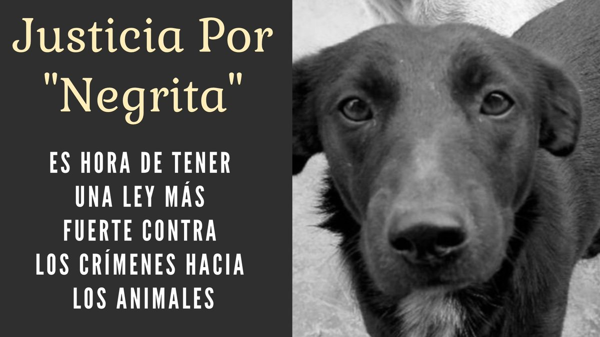 Negrita, tenía 4 años de edad y fue su propia dueña, Antonela Gustavino, quien denunció públicamente el hecho, debido a que su mascota "fue violada, desmembrada y mutilada", según se investiga, por un hombre en las 150 Hectáreas, del barrio Alto Comedero.