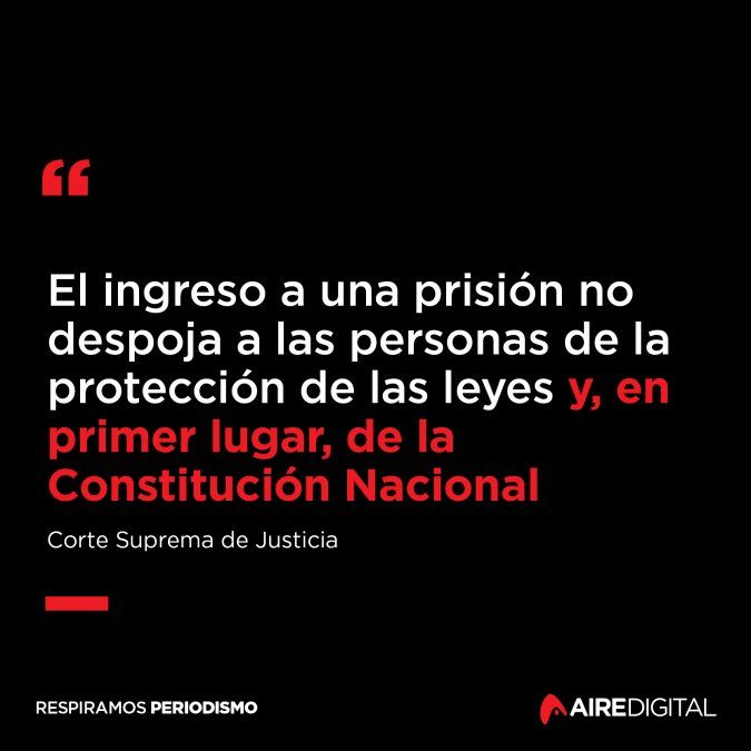 En su sentencia, la Corte Suprema consideró que la interpretación dada por la Cámara de Casación a las normas aplicables había sido en favor de los derechos consagrados por la Constitución y en los tratados internacionales con jerarquía constitucional. Destacó que “el ingreso a una prisión no despoja a las personas de la protección de las leyes y, en primer lugar, de la Constitución Nacional de modo que toda situación de privación de la libertad impone al juez o funcionario que la autorice el deber de garantizar el cumplimiento de las normas constitucionales, los tratados internacionales ratificados por la República Argentina y los derechos del detenido no afectados por la medida de que se trate”.