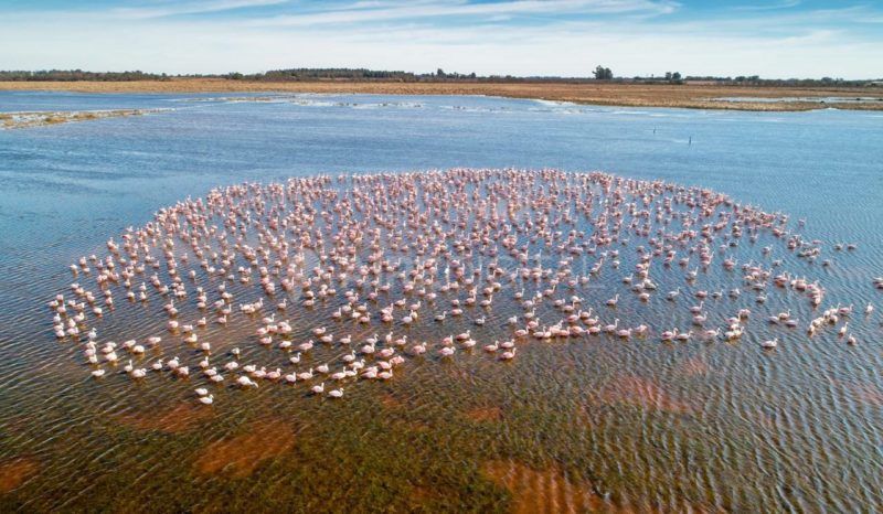 “En el primer vuelo, los flamencos ‘despegaron’ enseguida cuando me acerqué, pero después lo fueron aceptando y pude tomar imágenes desde más cerca, aunque siempre respetando una distancia de seguridad para cuidar a los flamencos y también al drone”, contó.