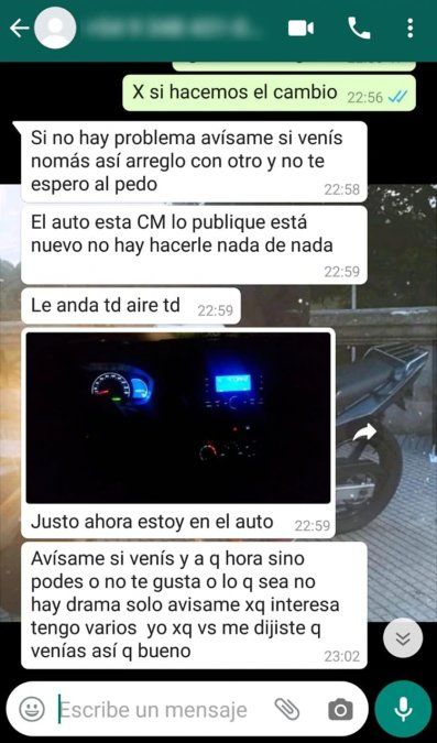Uno de los interesados hizo algunas averiguaciones de datos y llegó así a la dueña del Renault Kwid. Se contactó con ella y le hizo por privado varias preguntas para conocer el estado del vehículo. La mujer, de 32 años, se sorprendió ante la consulta: le contó al interlocutor que ladrones armados le habían robado ese auto en abril del año pasado, cuando circulaba por Villa Lugano, por lo que creía que se trataba de un error.