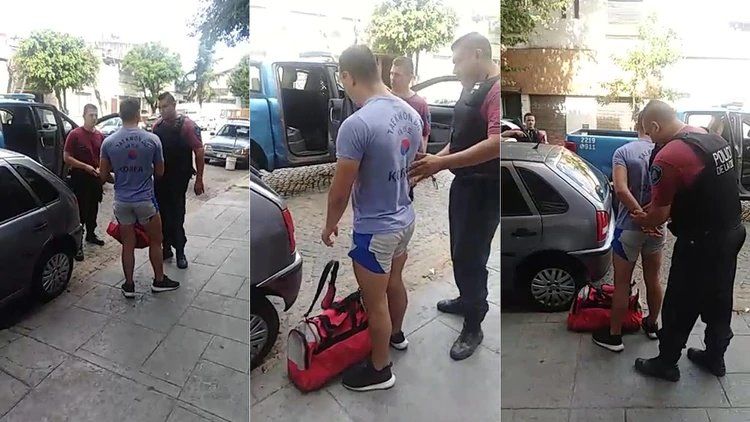 El hombre –que vestía un remera ajustada al cuerpo y short deportivo– fue detenido y ante la presencia de testigos se procedió a la identificación y a la requisa de las pertenencias que llevaba en su bolso.
