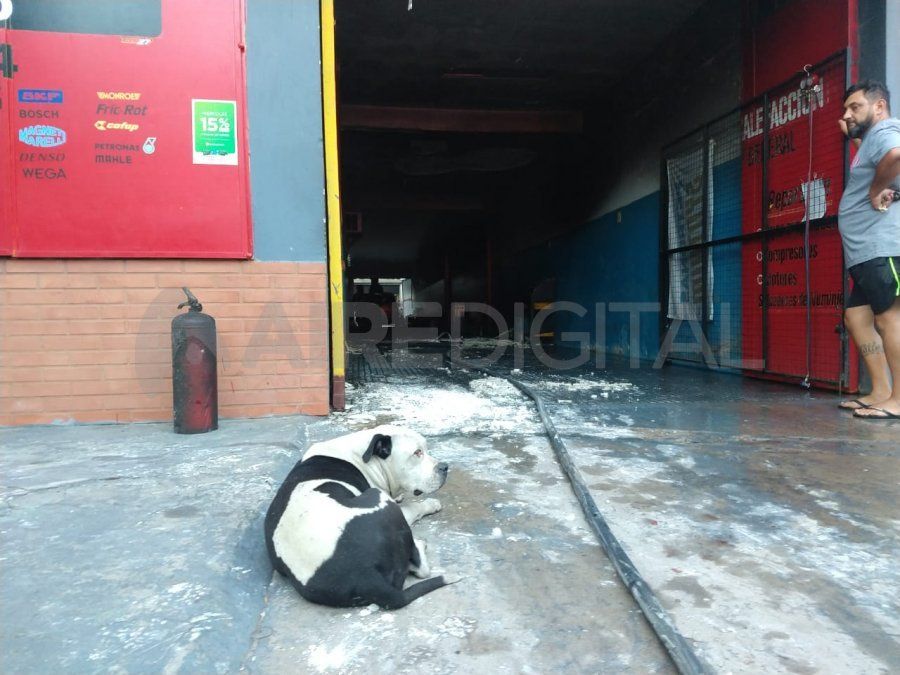 Antes de que el fuego se expanda, lograron sacar las máquinas del interior del taller y no hubo personas heridas. En el interior quedaron cenizas y el fuego hizo que se caiga parte de la mampostería del lugar.