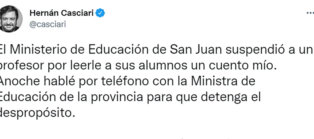 Casciari también logró contactarse con Cecilia Trincado, Ministra de Educación de la provincia de San Juan. Y según el escritor, la charla fue “muy surrealista”, puesto que la funcionaria reconoce la importancia del ejercicio, pero al mismo tiempo procede con la suspensión.