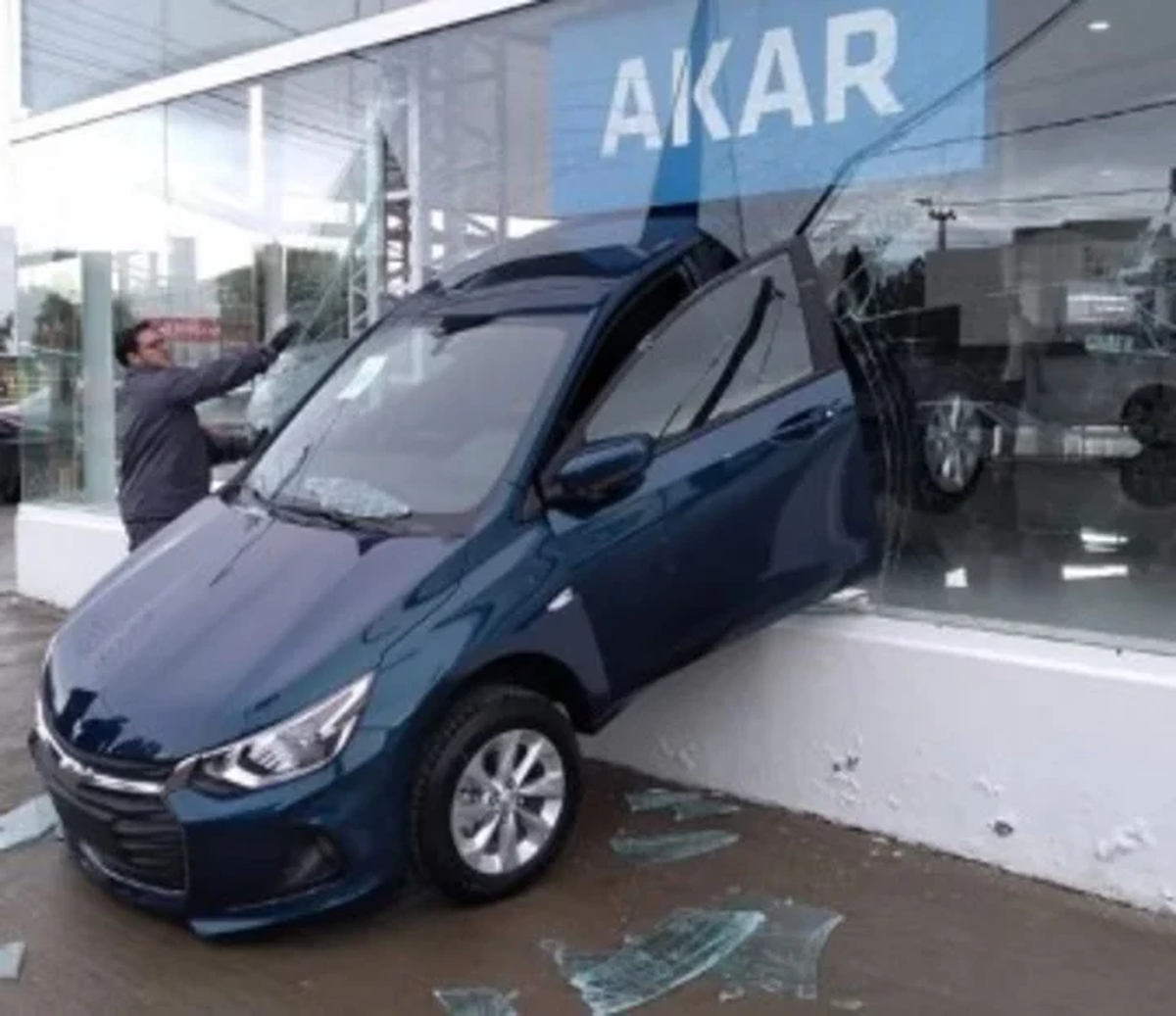 Un auto 0Km se estrelló contra la vidriera de la concesionaria Akar, sobre la ruta 3, en la ciudad de Comodoro Rivadavia, en la provincia de Chubut. Quedó incrustado en los ventanales del local ante la mirada atónita de quienes circulaban por el lugar.