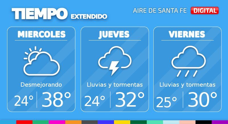 Para el jueves se espera una jornada lluviosa y con algunas tormentas, pero sin descartar mejoramientos temporarios que todavía podrían producir valores térmicos elevados. "Esperamos una mínima de 24° y una máxima de 32° con elevada sensación térmica producto de la humedad residual de las precipitaciones", adelantó Lucero.