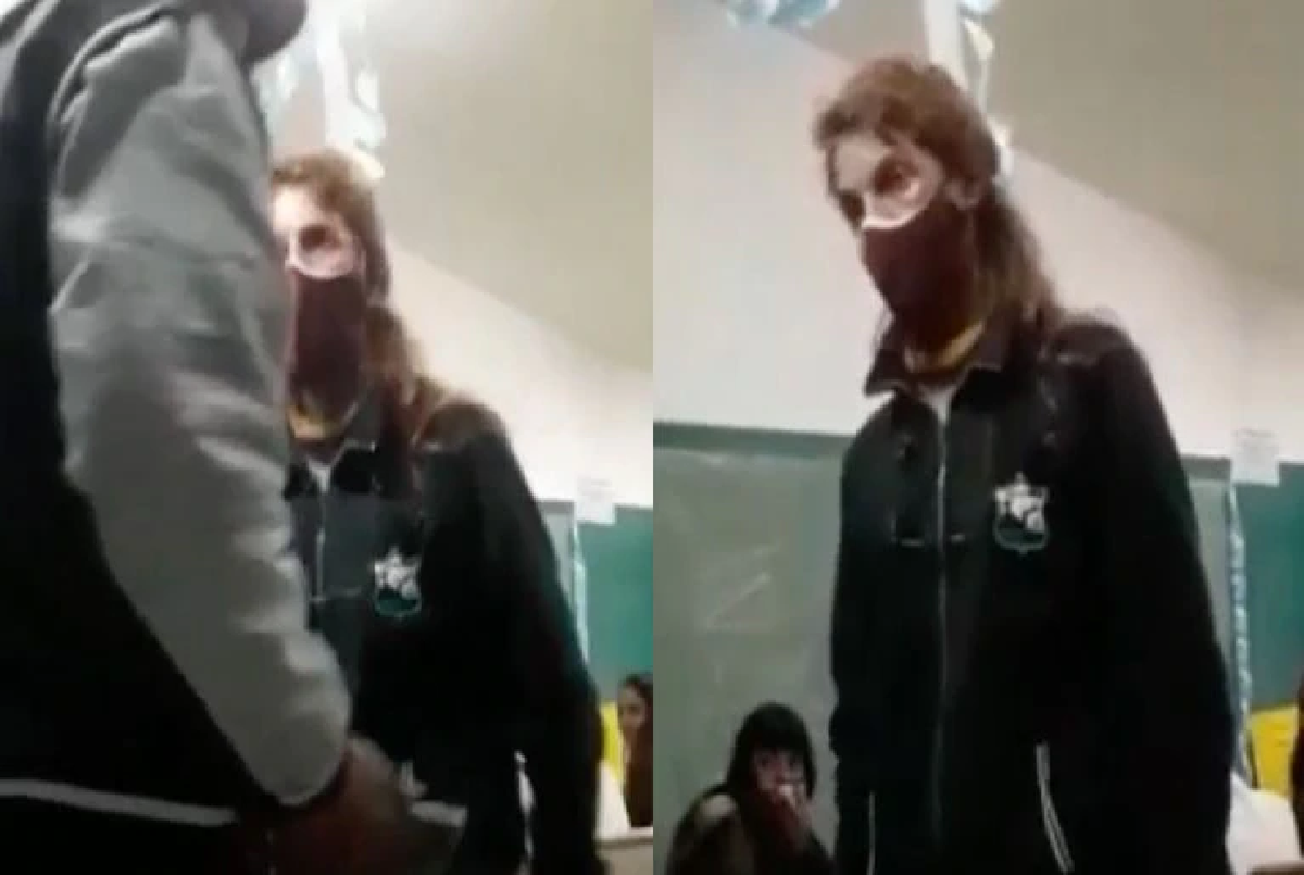 Ante esto, la profesora se acercó para intentar quitárselo. Sin embargo, el alumno se resistió, por lo que comenzó un forcejeo entre ambos. “¿Terminamos mal?”, le preguntó la docente al chico. Del otro lado, él le respondió: “¿Qué estás haciendo, vieja ridícula?”, se para de la silla y sigue insultándola. Mientras tanto, los demás estudiantes del salón arengan al alumno.