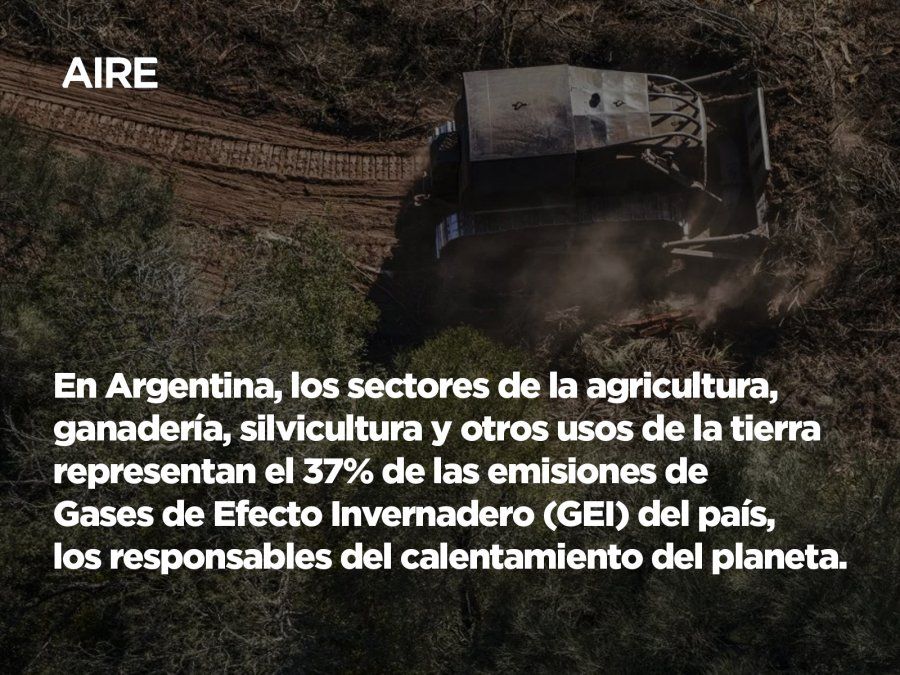 ¿Qué explica la deforestación? Principalmente, el avance de la frontera agropecuaria para ganadería y también para cultivos, con la soja a la cabeza. En Argentina, los sectores de la agricultura, ganadería, silvicultura y otros usos de la tierra representan el 37% de las emisiones de Gases de Efecto Invernadero (GEI) del país, los responsables del calentamiento del planeta.