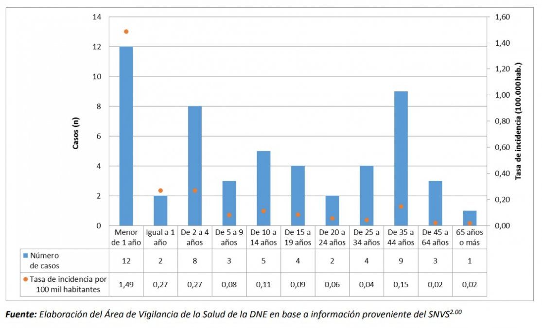 El mayor número de ellos corresponde a residentes de Buenos Aires y CABA. La mayor tasa de incidencia se ve en menores de 1 año.