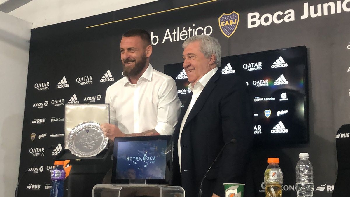 "Tengo necesidad de acercarme a mi hija que vive en Italia, me extraña y la extraño, no hay otro tipo de problema, ni con (Juan Román) Riquelme ni con nadie. La nueva dirigencia trató de convencerme, pero la decisión es definitiva. No pensaba que podía amar a otro club que no sea Roma, una parte de mi corazón se queda en Boca", dijo De Rossi en conferencia de prensa desde La Bombonera, acompañado por el presidente Jorge Ameal.