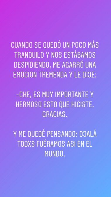 Según informa Pronto, finalmente, la actriz le agradeció el gesto que tuvo con ella: "Che, es muy importante y hermoso esto que hiciste. Gracias".