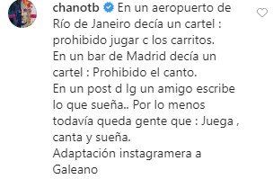 “Soñaba con una camioneta, trabaje y finalmente la compre, ahora me subo y es solo un auto más. Se trata de esa constante insatisfacción la que tengo que trabajar. Disfrutar las pequeñas cosas de la vida. En tiempo y espacio. Ni antes deseándolas con fuerza y locura ni después dejando de valorarlas cuando las conseguí. Aquí, ahora. Y nada más”, concluyó el actor y recolectó cientos de comentarios de cariño y fuerza para este difícil momento que le tocó atravesar entre los que se destacaron el de su amiga Flor de la V y Chano.