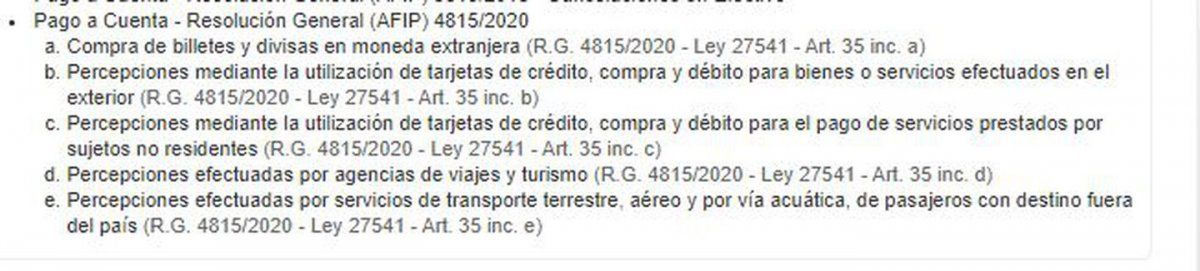 En ese submenú, debe seleccionarse el apartado Pago a Cuenta - Resolución General (AFIP 4815, donde se desplegarán opciones según la operación por la que se desea realizar las deducciones: