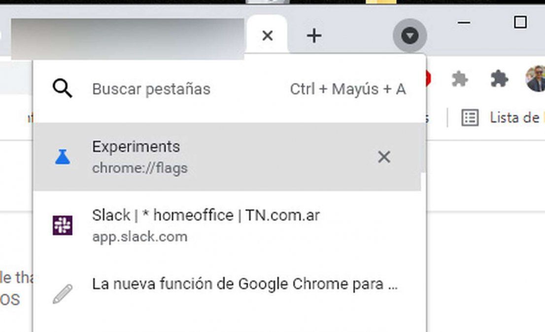 Como todavía no le apareció a todos los usuarios, una alternativa es incorporar a mano esta función experimental del navegador de Google. Para hacerlo hay que acceder a las flags, las opciones de prueba de Chrome, yendo a sección Flags (en chrome://flags/) o directamente en la opción para habilitar las búsquedas en pestañas (tabs), en chrome://flags/#enable-tab-search.