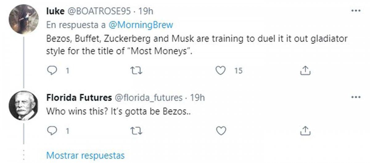 Aquella escena derivó en un caudal de risas, burlas y críticas. Bueno, eso no debería sorprendernos en las redes sociales. Al tuit con el video que publicó la cuenta @MonringBrew, le siguen comentarios risueños como aquel que dice que “Bezos, Buffet, Zuckerberg y Musk se están entrenando para batirse en duelo al estilo gladiador”, y otro dijo que luego de haber visto al empresario de 37 años en esa actividad dejará de seguirlo en Facebook.