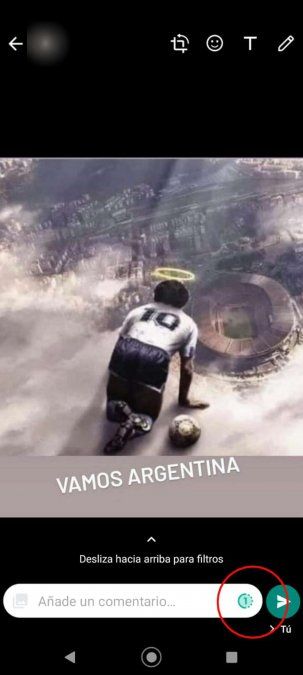 - Después de seleccionarlo aparecerá un ícono con forma de reloj en la barra, a la derecha de “Añade un comentario”. Es un 1, en un círculo verde, que indica la cantidad de veces que se podrá ver el archivo, la foto o el video.