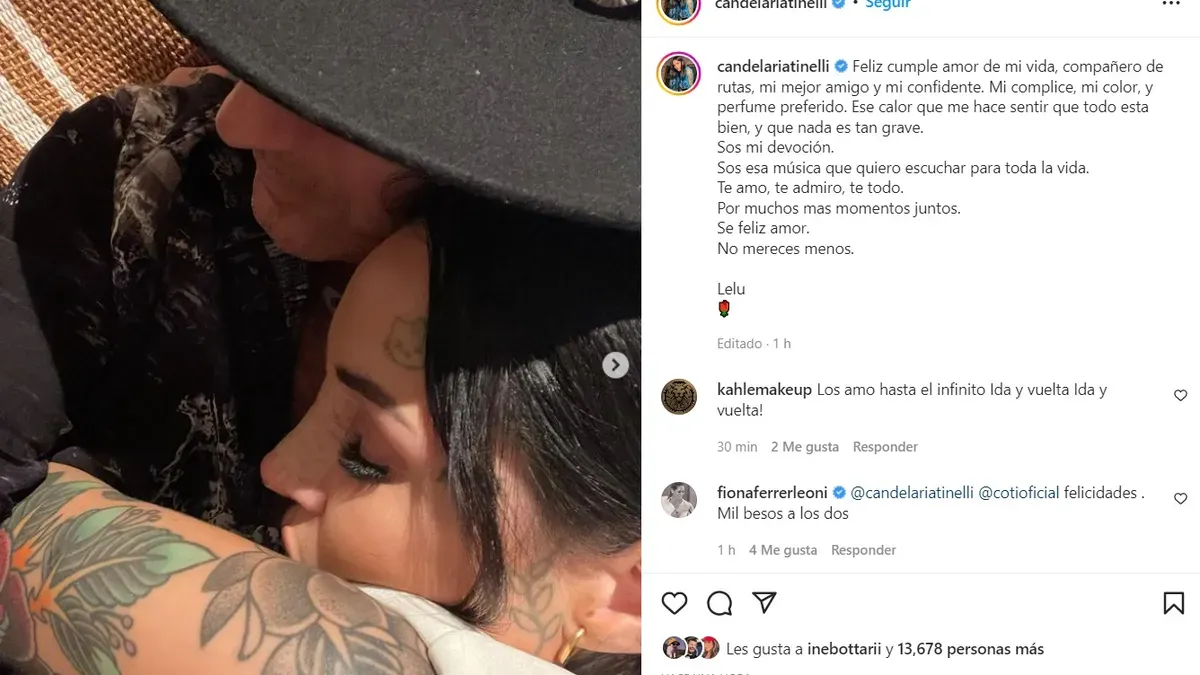 "Sos mi devoción. Sos esa música que quiero escuchar para toda la vida. Te amo, te admiro, te todo. Por muchos mas momentos juntos. Se feliz amor. No mereces menos. Lelu", cerró la hija de Marcelo Tinelli.