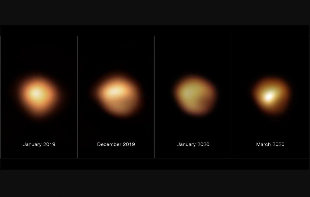 A finales de 2019, la disminución de brillo de Betelgeuse (un cambio perceptible incluso a simple vista) llevó a Miguel Montargès, del Observatorio de París, y a su equipo a apuntar el VLT de ESO hacia la estrella. Una imagen de diciembre de 2019, en comparación con una imagen anterior tomada en enero del mismo año, mostró que la superficie estelar se había vuelto más oscura, especialmente en la región sur. Pero la comunidad astronómica no tenía claro cuál era el motivo.