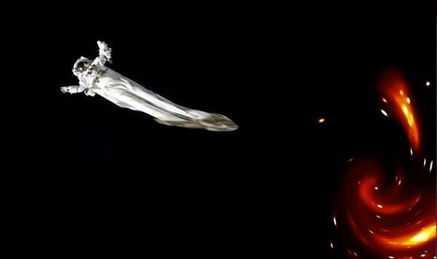 Imaginate cayendo de pies hacia un agujero negro. La espaguetización ocurre porque la gravedad en tus pies es mucho más fuerte que la de tu cabeza, ¡así que empezas a estirarte!