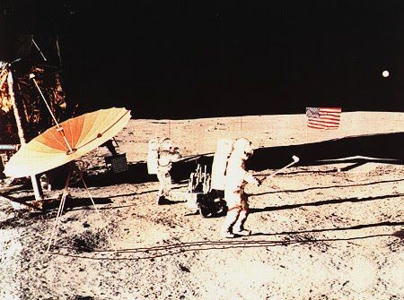 El comandante del Apolo 14, Alan B. Shepard se convirtió en el primer hombre en jugar al golf en la Luna. Con su Hierro 6, especialmente preparado para poderlo usar con los gruesos guantes, Shepard golpeó una pelota que según dijo se alejó millas y millas.