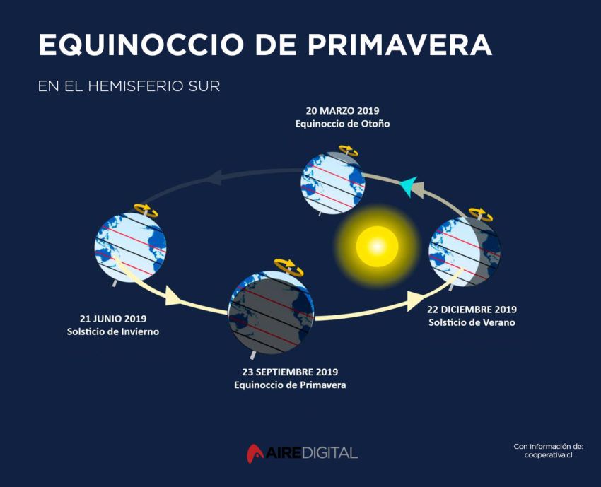 Sin embargo, el Equinoccio de Primavera –propiamente dicho– tiene lugar entre los días 20 y 21 de marzo en el Hemisferio Norte, y los días 22 y 23 de septiembre en el Hemisferio Sur. Solo ocurre una vez al año en cada hemisferio y, paralelamente a él, en el hemisferio opuesto se produce el Equinoccio de Otoño.