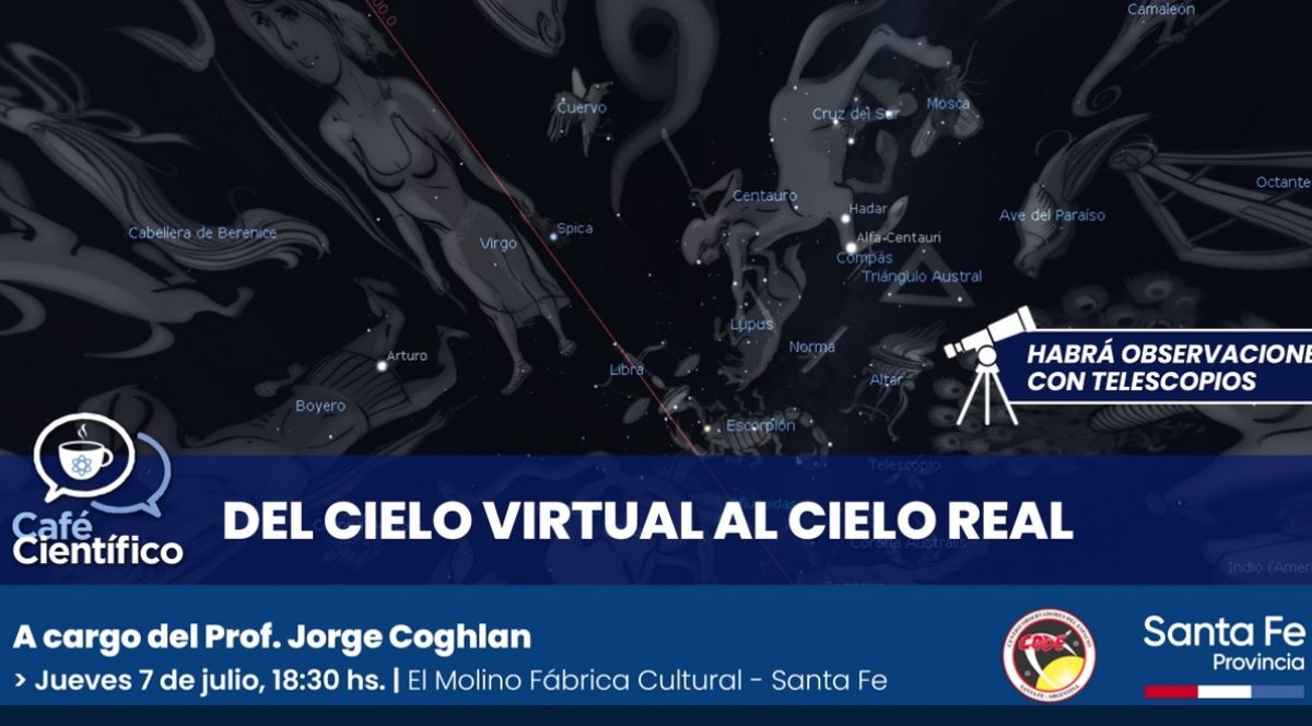Este jueves a la tarde, en el Molino Fábrica Cultural, realizarán un café científico denominado “Del cielo virtual al cielo real”. La actividad, con entrada libre y gratuita, se llevará a cabo desde las 18:30 horas y estará a cargo del profesor Jorge Coghlan, director del Observatorio Astronómico y Museo del Espacio (Code) y secretario de la Liga Iberoamericana de Astronomía (Liada).