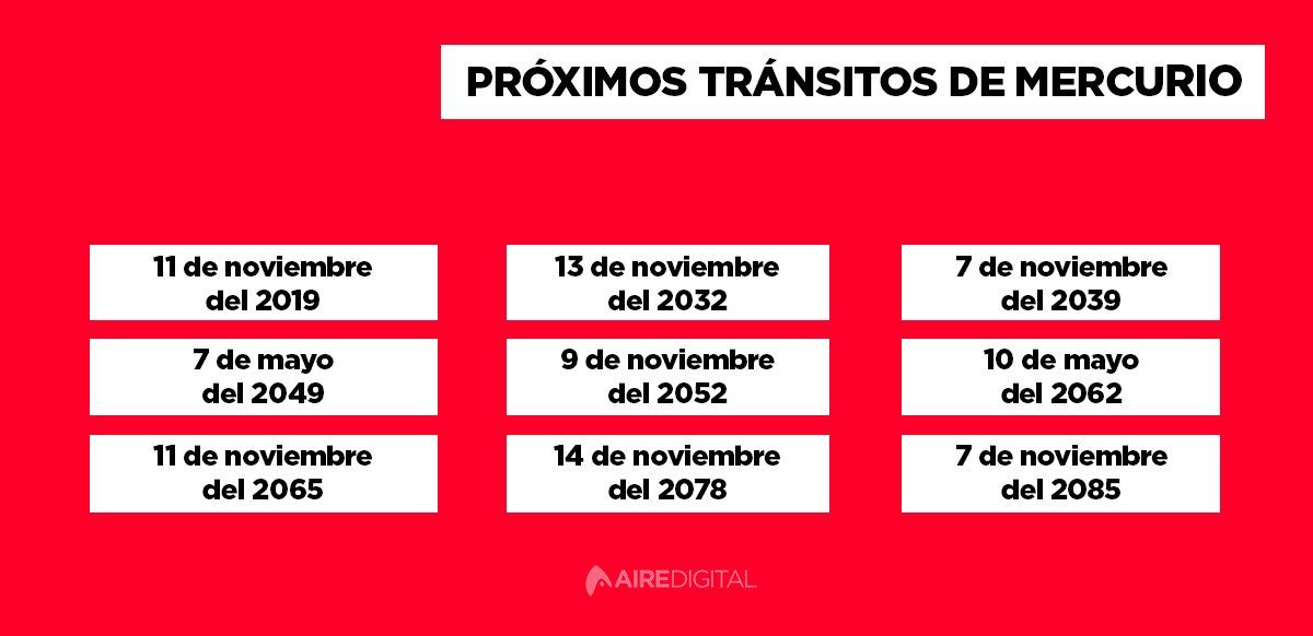 Los pasos anteriores de Mercurio por el disco solar en el siglo XXI sucedieron el 7 de mayo de 2003, 8 de noviembre de 2006 y 9 de mayo de 2016.