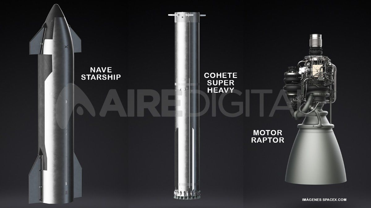 - La nave Starship está propulsada por 6 motores, 3 motores Raptor y 3 motores Raptor Vacuum (RVac), que están diseñados para su uso en el vacío del espacio.