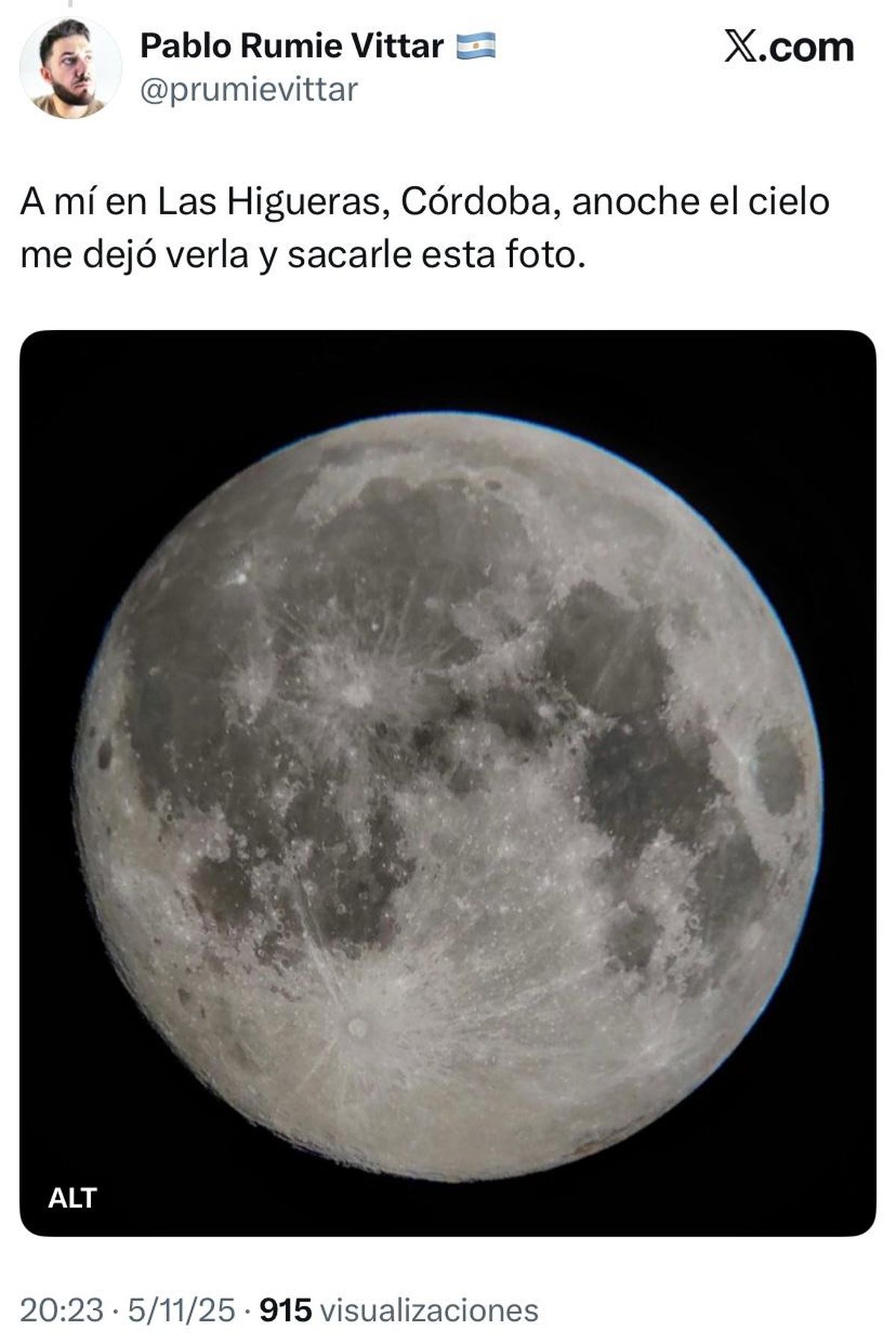 Este miércoles a la noche, el cielo regaló uno de esos momentos que hacen detener el paso. La Luna, redonda y majestuosa, brilló con más fuerza que en todo el año. No era una Luna llena cualquiera: fue una superluna, ese fenómeno en el que nuestro satélite se acerca un poco más a la Tierra en su órbita y parece agrandarse n poquito, como si quisiera abrazarnos con su luz.