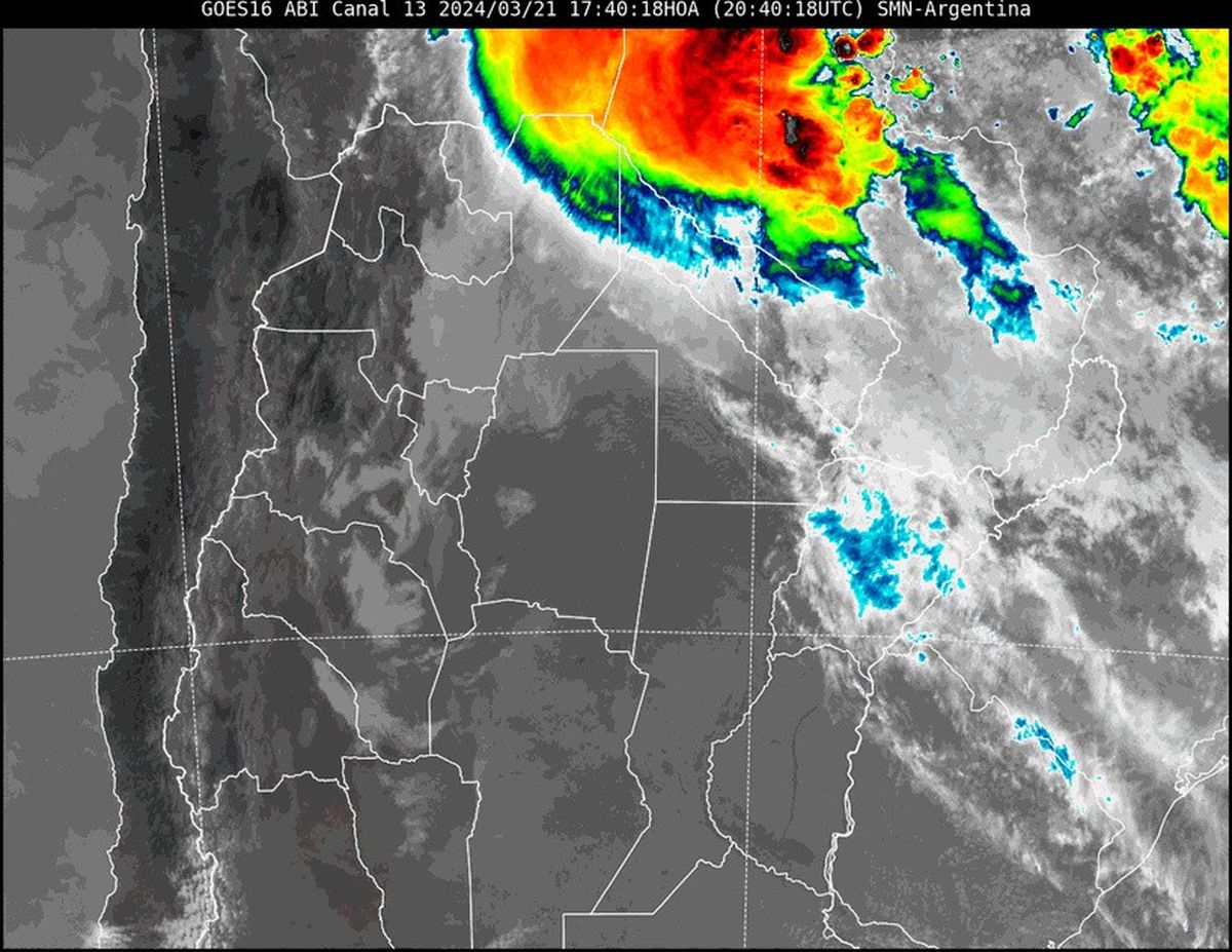 En la imagen satelital se puede visualizar nuestra provincia prácticamente libre de nubosidad en toda su extensión. Luego de la llegada del frente frío que produjo tormentas de variada intensidad en la región, pero predominando los milimetrajes bajos, las temperaturas descienden como estaba previsto. La temperatura mínima, en el día de mañana, será de 13° en nuestra ciudad. Además, si el viento queda en calma podrán formarse algunos bancos de niebla.