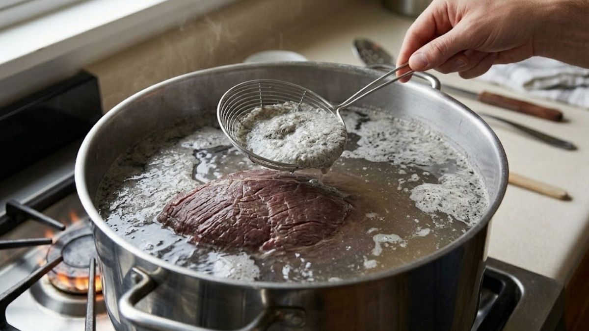 Si alguna vez pusiste carne a hervir y viste que se forma una espuma gris en la superficie, seguro te preguntaste si es algo malo o si hay que sacarla. La escena puede parecer extraña, pero en realidad es un fenómeno completamente normal en la cocina.