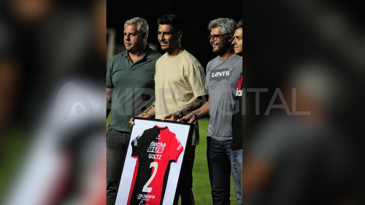 En la previa del partido, la comisión directiva de Colón le entregó una camiseta encuadrada en reconocimiento a la trayectoria de Paolo Goltz, campeón con la institución.
