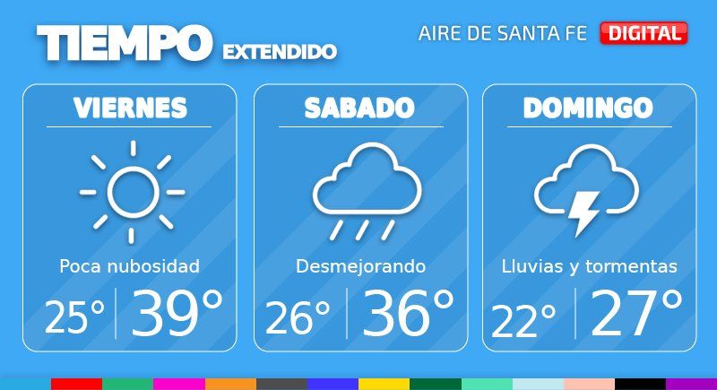 La temperatura mínima será de 25° y la máxima de 39°, con una sensación térmica que muy posiblemente supere los 40° a 42°, según informó el experto del clima de Aire de Santa Fe, Pablo Lucero.