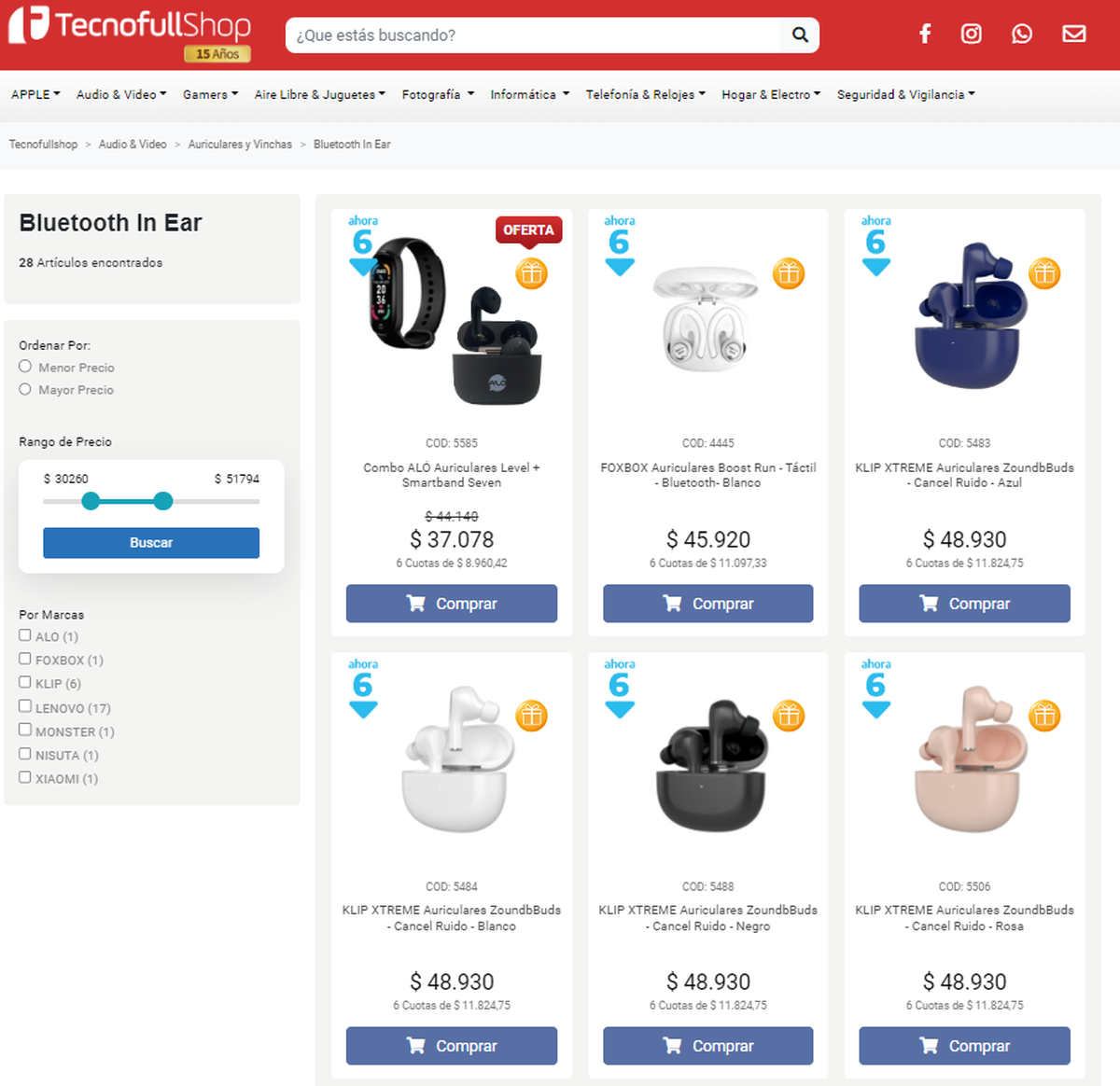 En la sección de Bluetooth In Ear de TecnofullShop, encontrarás una amplia variedad de modelos que se adaptan a todos los presupuestos. Desde $16000 hasta $80000, tenemos opciones que se ajustan a cada estilo de vida y preferencia auditiva.